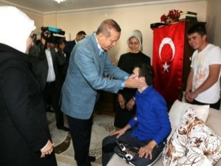Daha sonra, şehitlerin ailelerini ziyaret eden Erdoğan, ilk olarak, darbe girişimi gecesi 4. Ana Jet Üs Komutanlığı'ndan kalkan F-16'ları engellemeye çalışırken 19 yaşında şehit düşen Ömer Takdemir'in ailesine taziyelerini iletti.