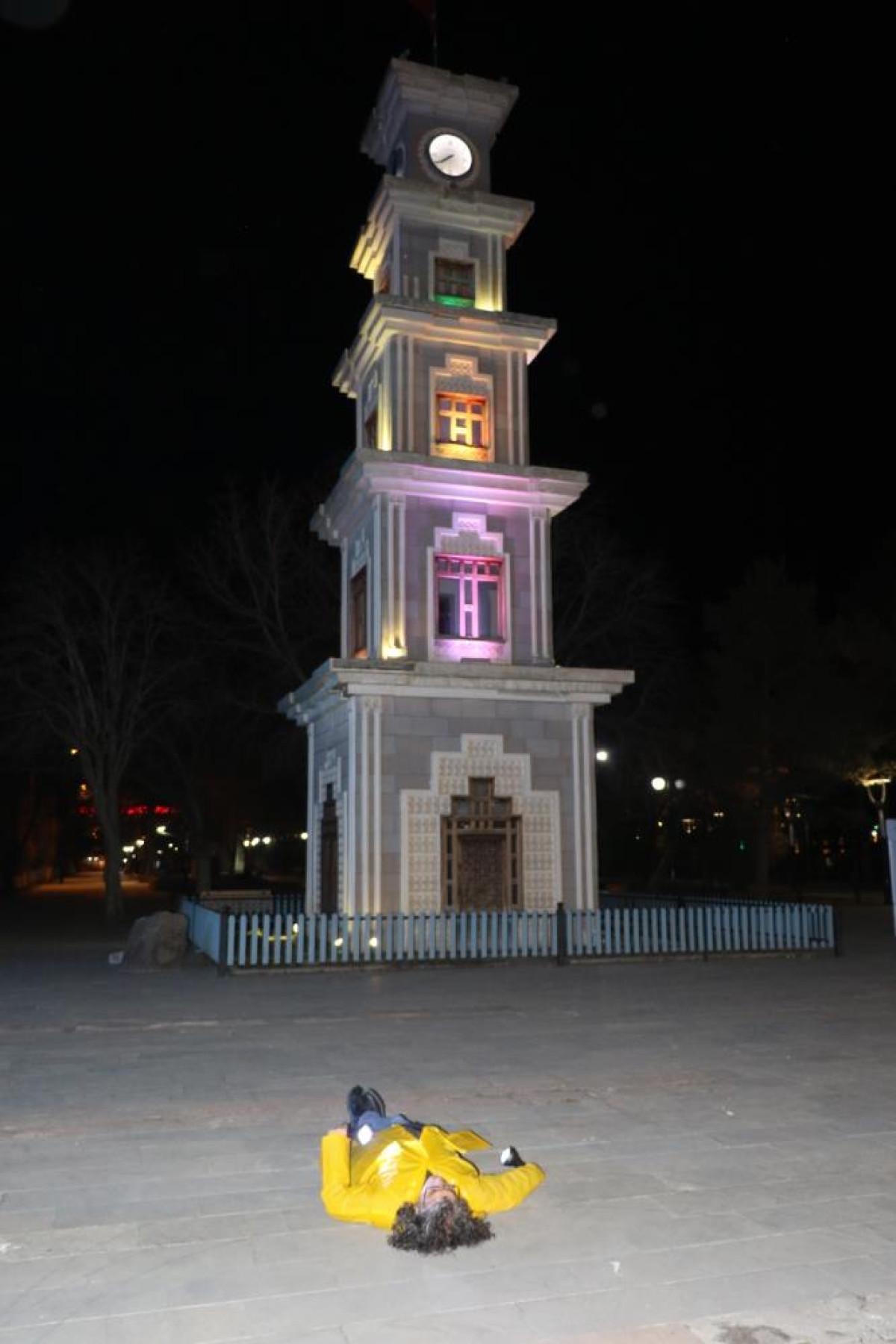 Kavukcu, insanların meraklı bakışları arasında sessizce Saat Kulesi önüne kadar yürüdü. Daha sonra yerde uzanarak uzun bir süre hareketsiz kaldı.
