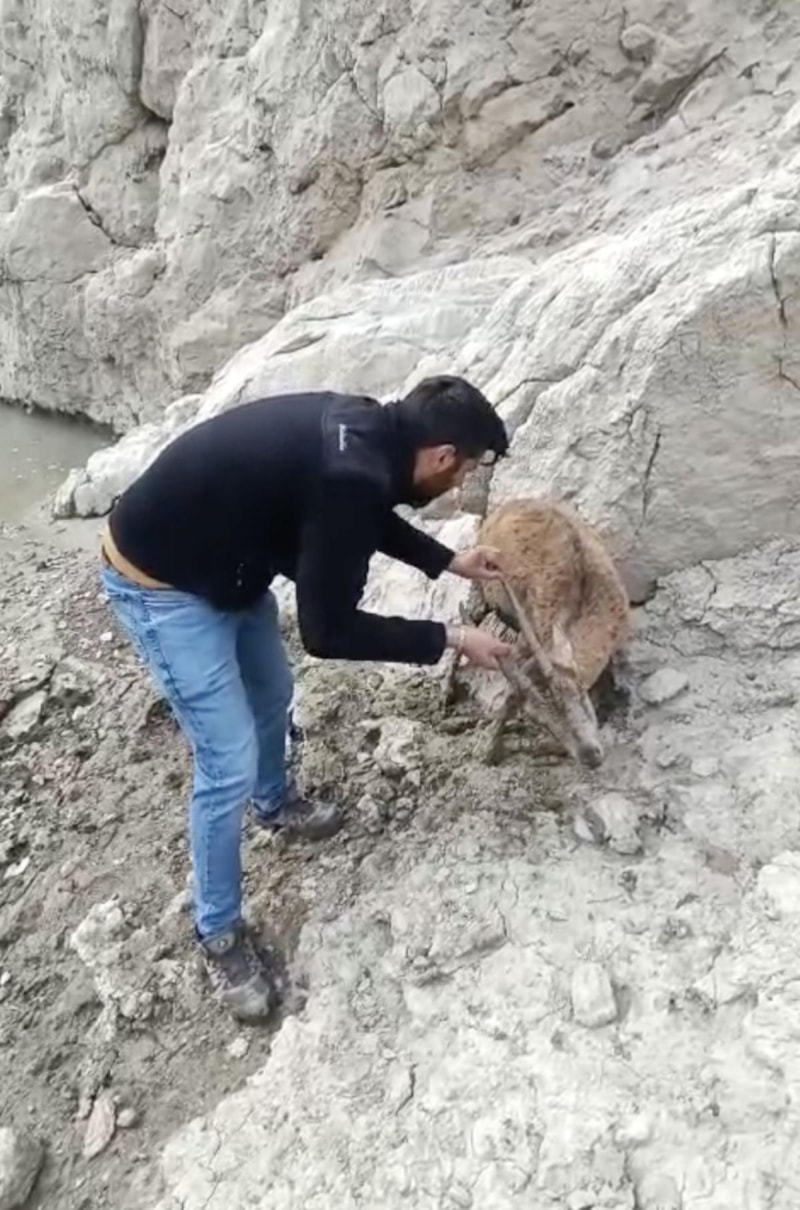 Bottan inen 3 arkadaş, yanlarında getirdikleri iple keçiyi mahsur kaldığı yerden kurtardı. Balçıktan temizlenen keçi, yeniden doğal ortamına bırakıldı.