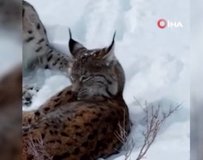 Erzincan’da nesli tükenme tehlikesindeki iki vaşak Keşiş Dağı kırsalında görüntülendi.