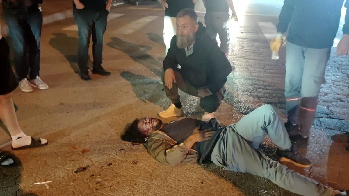 Kazanın etkisiyle motosiklet sürücüsü yere savruldu.