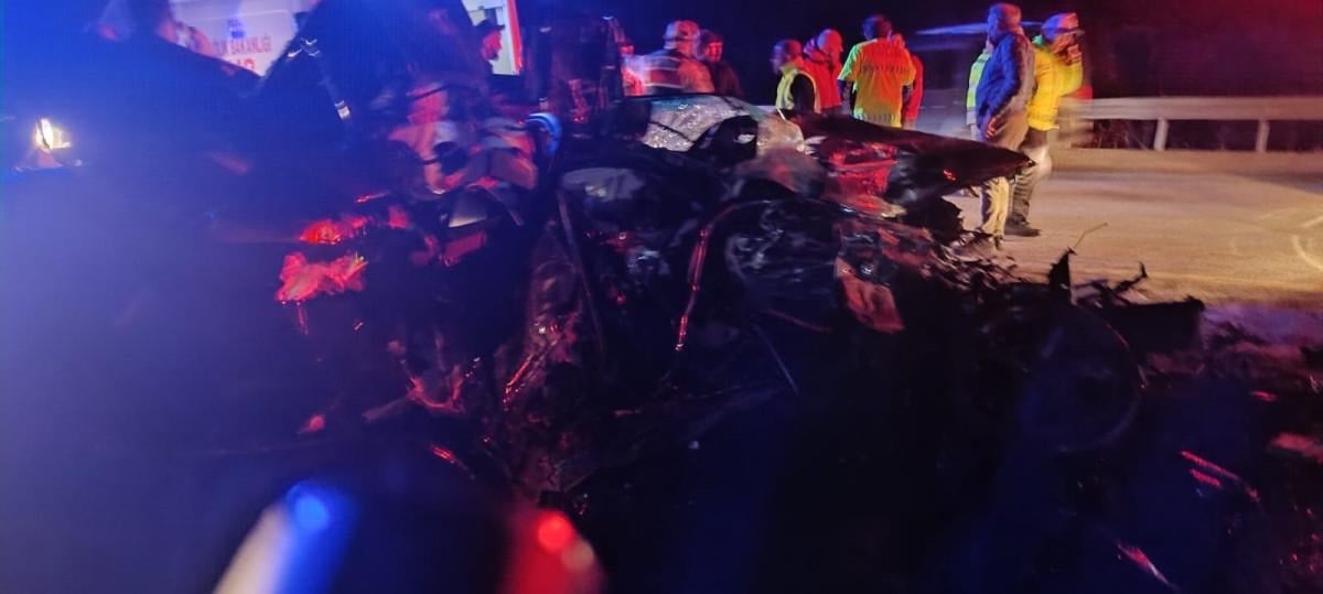 Araçta sıkışan 3 kişi feci şekilde kaza mahallinde hayatını kaybetti,1 kişi de yaralandı.