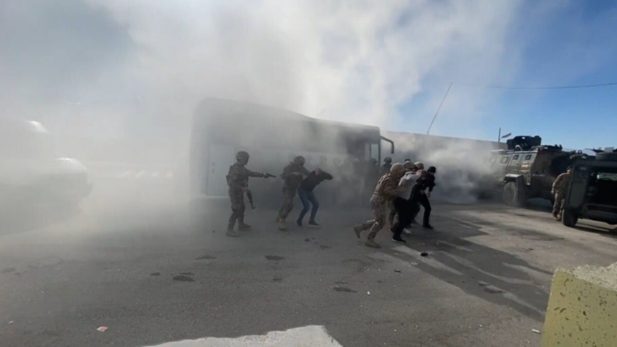 Ses ve sis bombaları attıktan sonra camlardan ve kapılardan midibüse giren ekipler, yolcuları rehin alan teröristleri etkisiz hale getirdi.