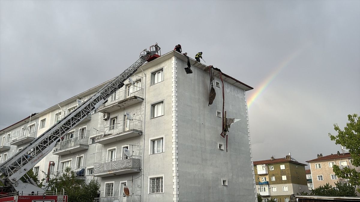 Fırtına nedeniyle Akşemseddin Mahallesi'ndeki bir binanın çatısı uçtu.