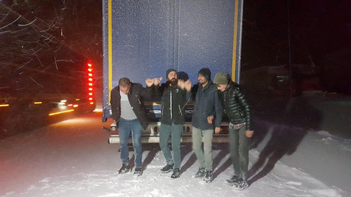 Saatlerdir yollar kapalı olduğu için beklemek zorunda kaldıklarını ifade eden bazı tır sürücüleri, çileyi eğlenceye dönüştürdü. Araçlarını park ettikleri alanda müzik eşliğinde halay çeken tır sürücüleri, bu şekilde ısınmaya çalıştı.