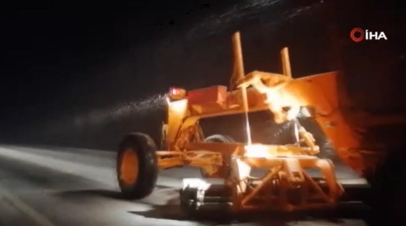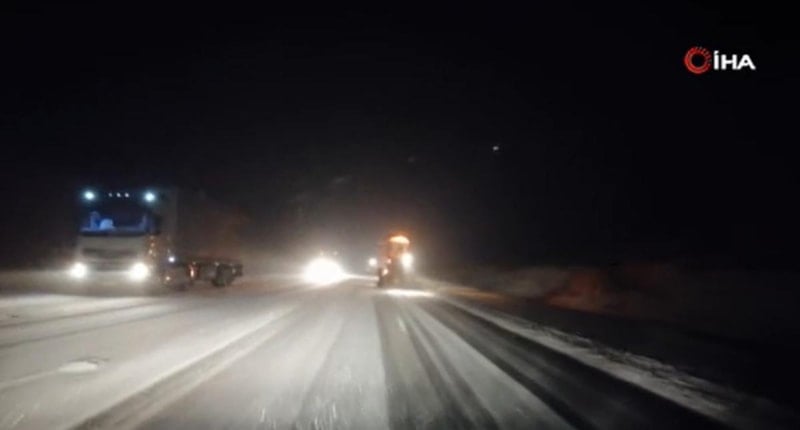 Karayolları ekipleri güzergahlarda kar küreme ve tuzlama çalışması yaptı. Ağır tonajlı araçlar yapılan karla mücadele çalışmasının ardından seyirlerine devam etti.