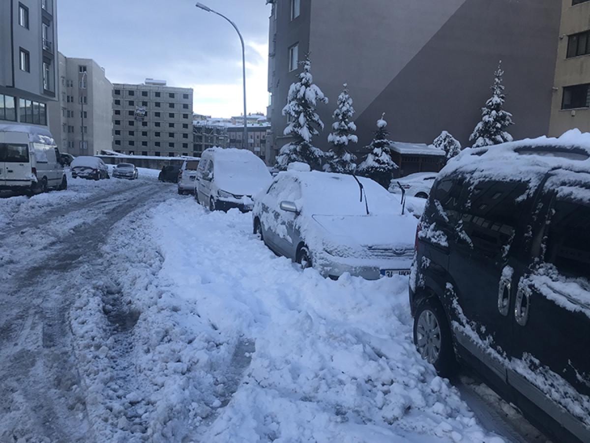 Cadde, sokaklar ile park halindeki araçların kar ve buzla kaplandığı kentte vatandaşlar, yol ve kaldırımlarda yürümekte zorluk çekti.