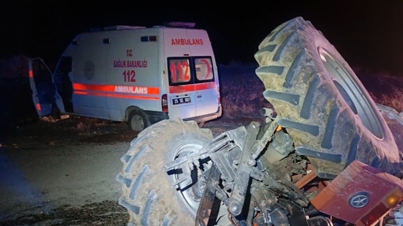 Kazada ambulans sürücüsü Aki ile sağlık personelleri Mehtap Ölmez İlhan (28) ve Gamze Cengiz (40) ile traktör sürücüsü Pekgöz yaralandı.
