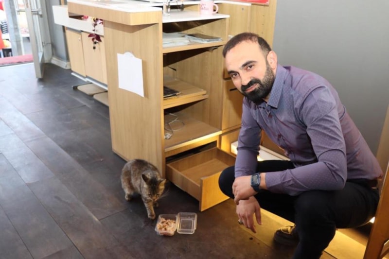 Ceylan, sadece barınma değil, beslenme ihtiyaçlarını da unutmamış; anne kedi için su ve mama tedarik ederek ona güvenli bir alan sunmuş. Bu ince davranış, hem çevre esnafı hem de müşteriler tarafından büyük takdir topladı.