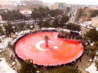 Erzurum'da buzdan Türk bayrağı yaptılar VİDEO