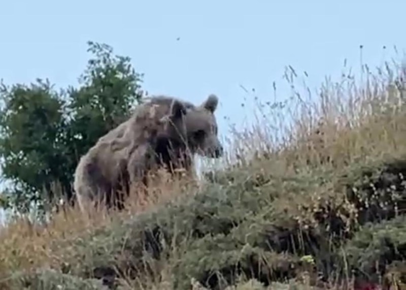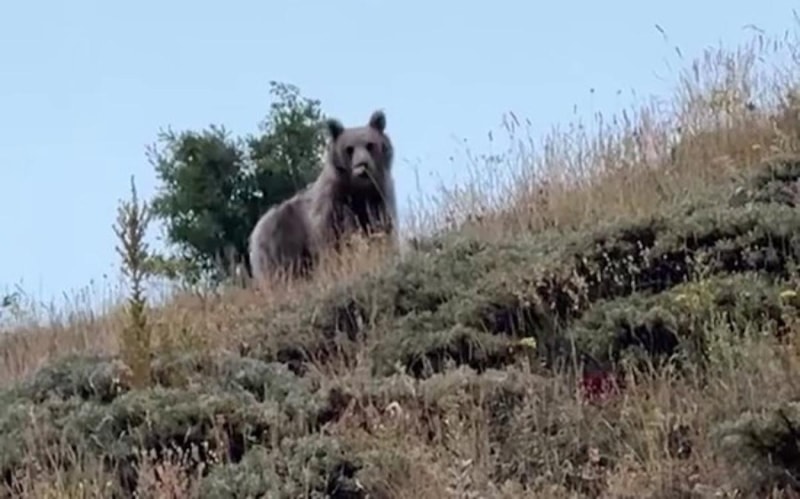 Şaşkınlığını çabucak üzerinden atan Kaplan, bir yandan cep telefonuyla o anları kaydederken, diğer yandan bağırarak ayıyı korkutmaya çalıştı. Bir süre çobanı süzen ayı, daha sonra koşarak gözden kayboldu.
