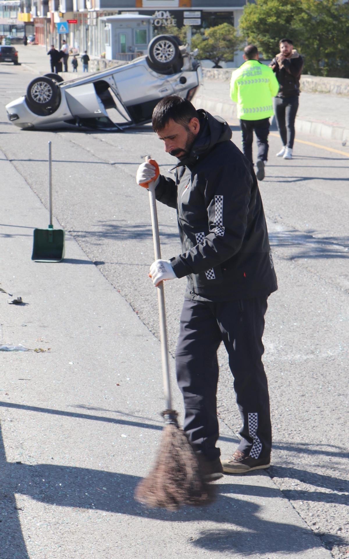 Polis ekipleri çevre güvenliğini alarak yolu trafiğe kapattı. Belediye ekipleri de yola dökülen cam parçalarını temizledi.