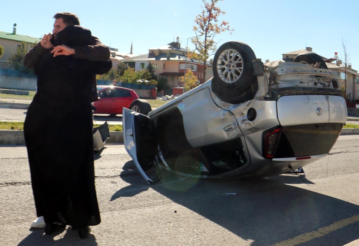 Bir iş yerinin güvenlik kameralarına da yansıyan kazada, otomobil ters dönüp kara yolunda bir süre sürüklendi.