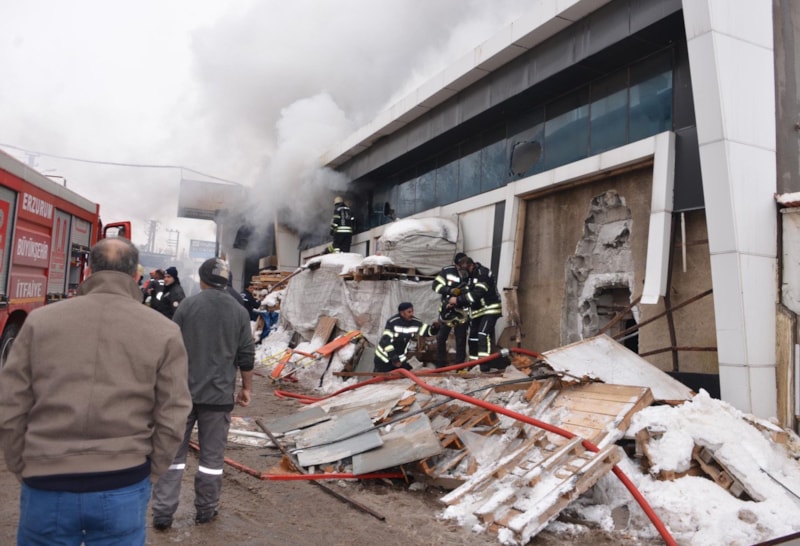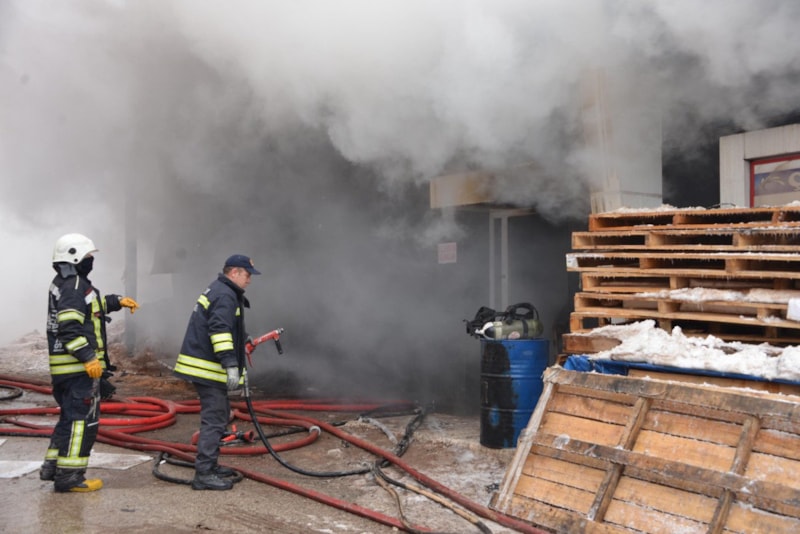 Yoğun dumanın sardığı iş yerinde kalanlar olduğu bilgisi üzerine ekipler, kurtarma çalışması yaptı.