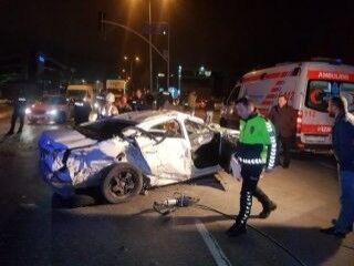 Esenyurt, Hadımköy-TEM bağlantı yolunda, Hadımköy yönüne giden otomobilin sürücüsü direksiyon hakimiyetini kaybederek, önce önündeki kamyonete sonra da bariyerlere çarptı.