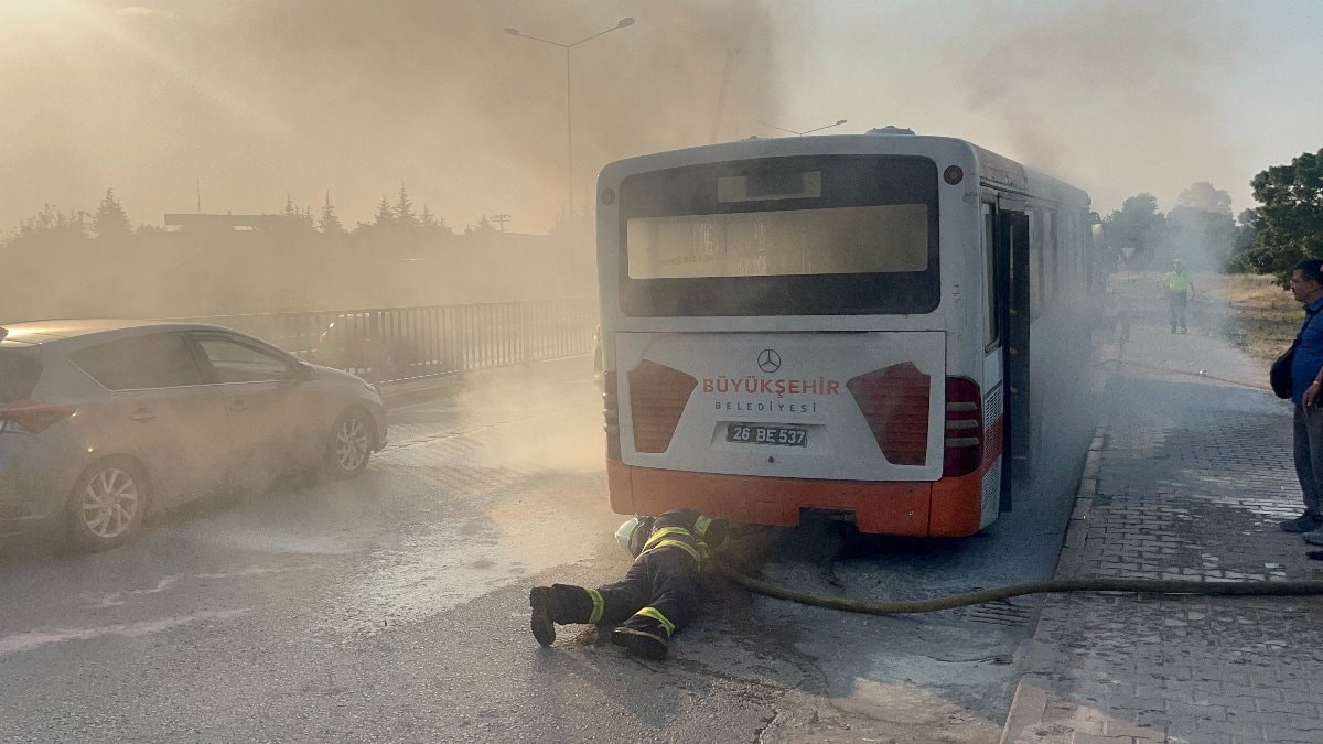 Sabah saat 06.30 sıralarında, çevreyolu üzerinde bulunan Alpu Kavşağı Ankara istikametinde meydana gelen olayda, Zafer Ç. (42) idaresindeki 26 BE 537 plakalı ve Odunpazarı otobüs durakları ile Kanlıpınar Mahallesi arasında olan 57 numaralı hatta çalışan belediye otobüsü, sol arka tekerinin körüğünün patlaması sonucu yanmaya başladı.