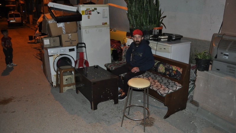 Eşi ve 11 yaşındaki kızıyla birlikte tahliye edildikleri evin önünde yaşayan ve komşularının desteğiyle beslenme ihtiyaçlarını karşıladıklarını belirten Murat Çolak, yardım istedi.