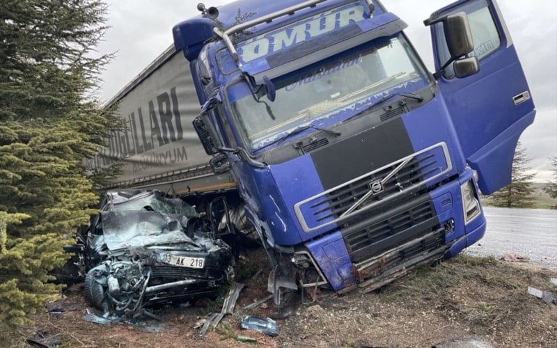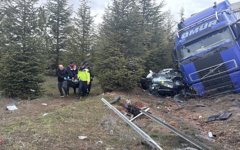 Eskişehir'de tırla otomobilin çarpışması sonucu aynı aileden 1 kişi yaşamını yitirdi, 2 kişi yaralandı. Kaza anı başka bir aracın araç içi kamerasına yansıdı.