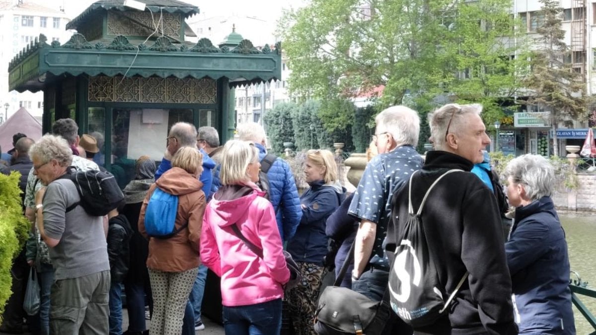 Eskişehir'de sabah saatlerinde etkili olan sağanak yağmur ve rüzgara rağmen turistler, şehrin simgesi kabul edilen Porsuk Çayı’nda seyahat etmek için uzun kuyruklar oluşturdu.