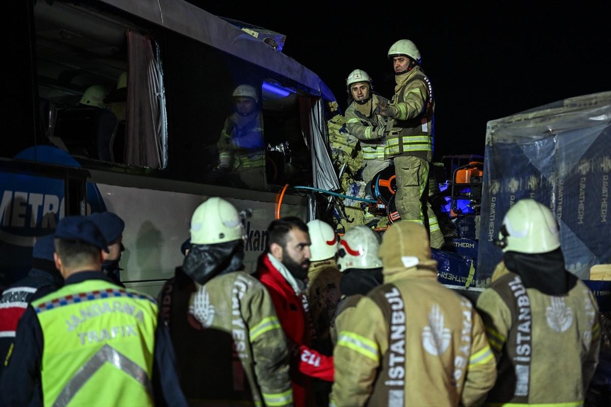 İstanbul'un Eyüpsultan ilçesinde saat 04.00 sıralarında Kuzey Marmara otoyolu Odayeri mevkiinde seyir halinde olan bir yolcu otobüsü ile tır çarpıştı.