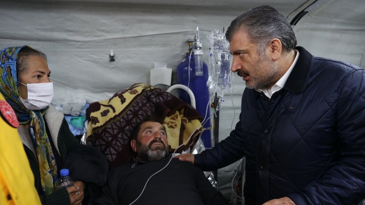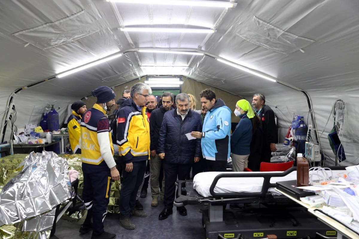 Bakan Koca, 6.4 büyüklüğündeki depremin ardından depremden etkilenen yaralıları sahra hastanesinde ziyaret etti.