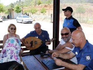 Yol kenarındaki kamelyaya davet edilen tatilciler, polis memuru Raşit Kırılmaz'ın çaldığı udu görünce şaşkınlık yaşadı. Tatilciler ud dinlerken güvenlik sorgulamaları yapıldı.
