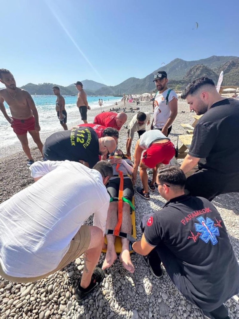 Denize düşen paraşütçüye, 112 Acil Çağrı Merkezine yapılan ihbar sonrası Ölüdeniz sahil kıyısına özel bir hastaneye ait ambulans yönlendirildi.