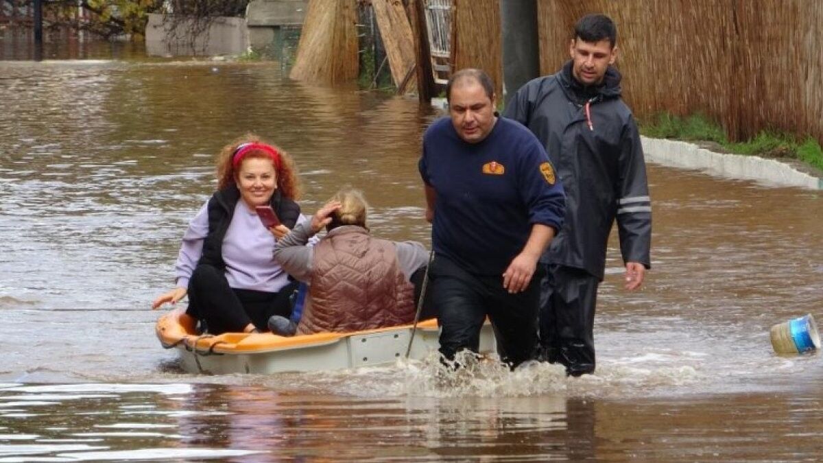 Muğla'nın Fethiye ilçesinde yağmur nedeniyle su basan evlerde mahsur kalanlar, itfaiye botu ve iş makineleriyle kurtarıldı.