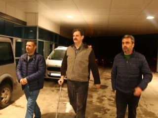 Emniyete gelişinde polis aracından inen Hersek'in yürümekte zorluk çektiği ve koltuk değneği kullandığı gözlemlendi.