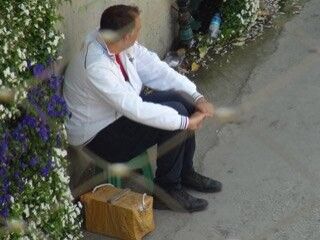 Sonrasında boyacı jest yapıyormuş gibi turistlerin ayakkabılarını boyamak için sandığını kuruyor. Bu hareketi jest olarak algılayan turistler ise boyacının para talebi karşısında şaşkına dönüyor.