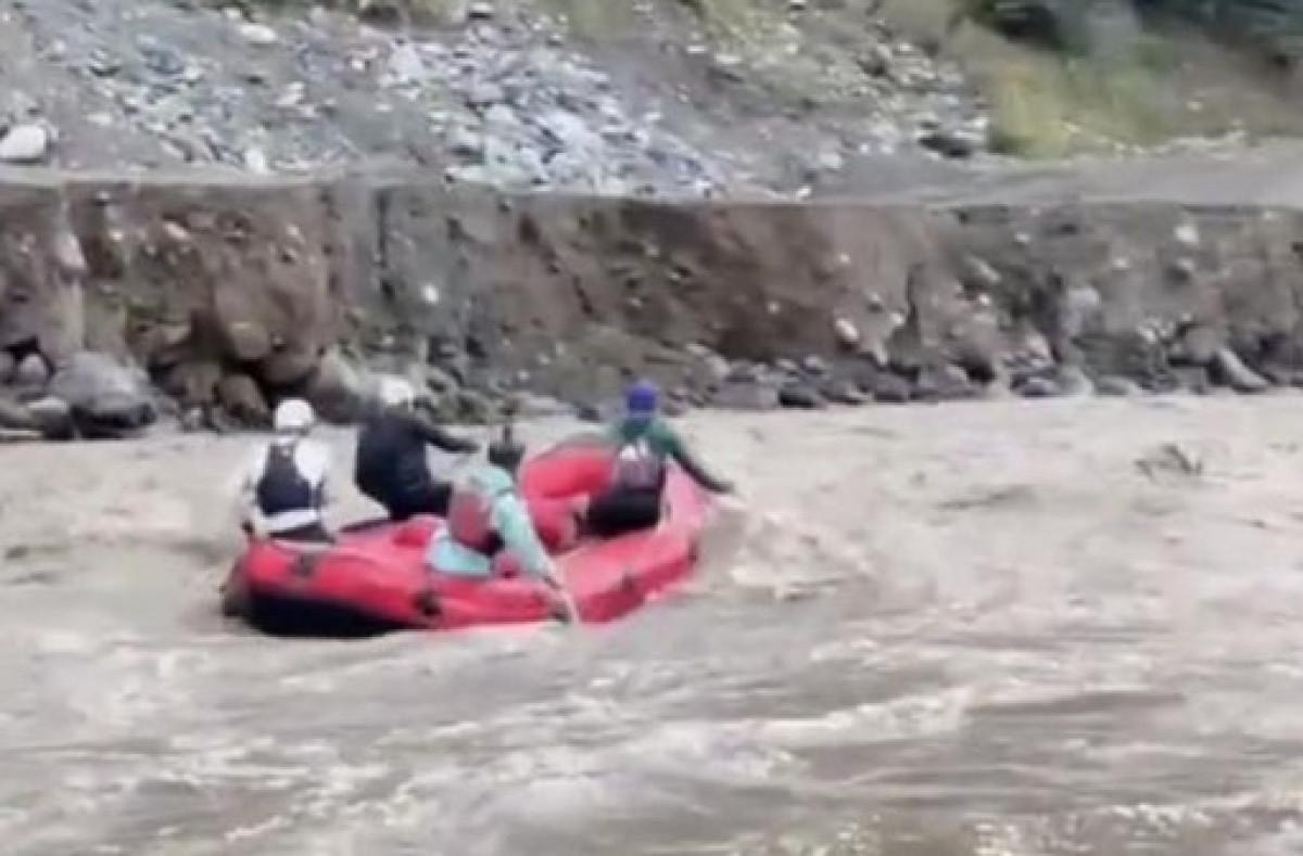 Rafting yapan grup çevredeki vatandaşların dikkatini çekti. Bottaki 4 kişinin akıntıya karşı verdiği mücadele, cep telefonu kameralarıyla kaydedildi.
