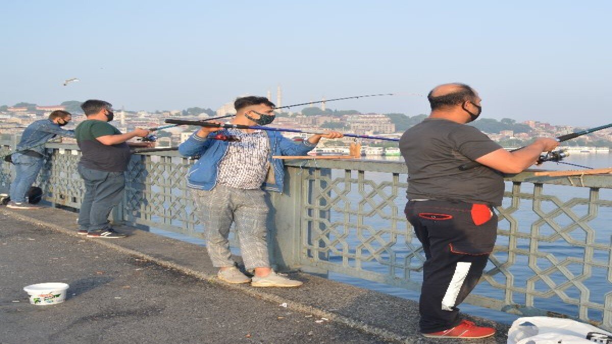 1 Haziran itibarıyla başlayan "yeni normal" sürecine ayak uydurmaya çalışan vatandaşlar, Galata Köprüsü'nde balık avına başladı.
