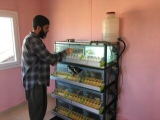 Deniz Özandaç, evinin bir odasında kurduğu mini kuluçka makinesiyle civciv üretimi yapıyor. Ürettiği civcivleri ise özel kafeslerde besliyor.
