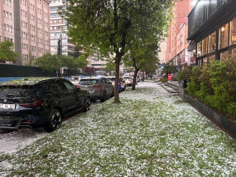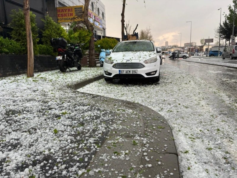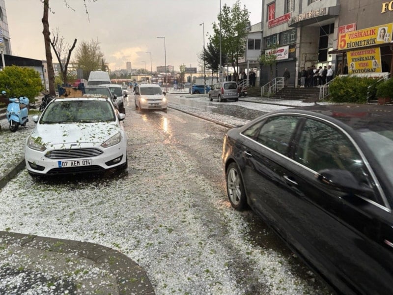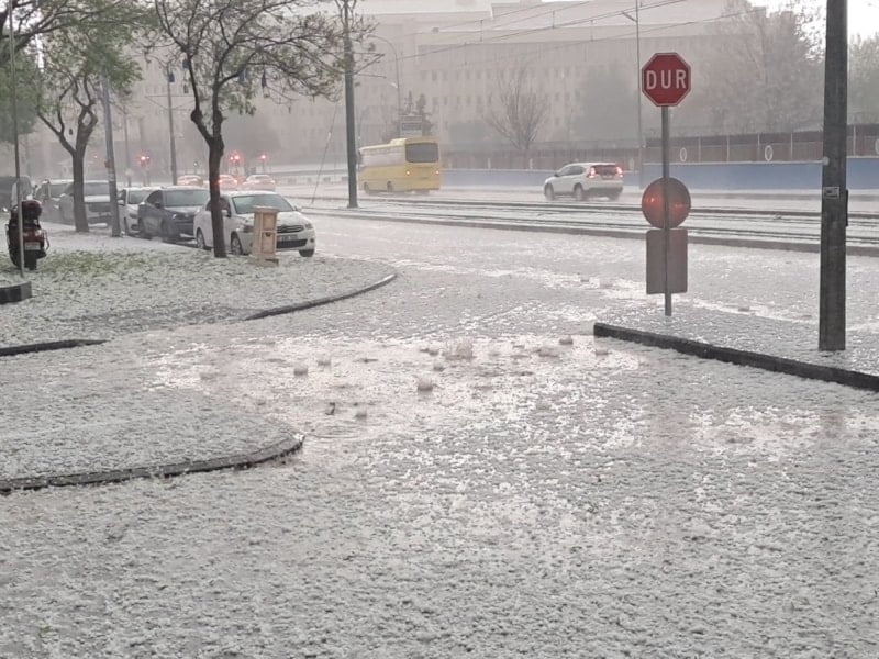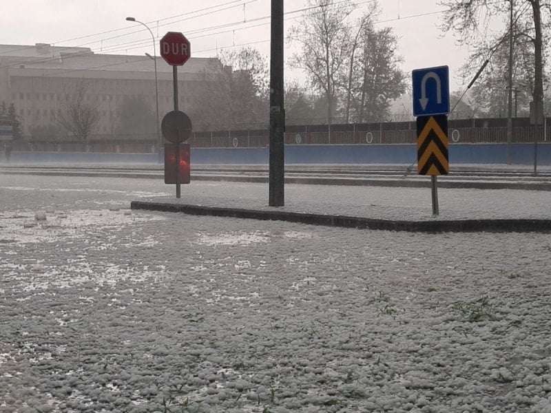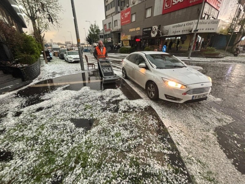 Saat 16.20 sıralarında başlayan dolu yağışı, yaklaşık yarım saat boyunca aralıksız sürdü. Kısa sürede etkisini artıran yağışla birlikte cadde ve sokaklar beyaza bürünürken, yollarda su birikintileri oluştu. Görüş mesafesinin düşmesi, trafikte de aksamalara yol açtı.