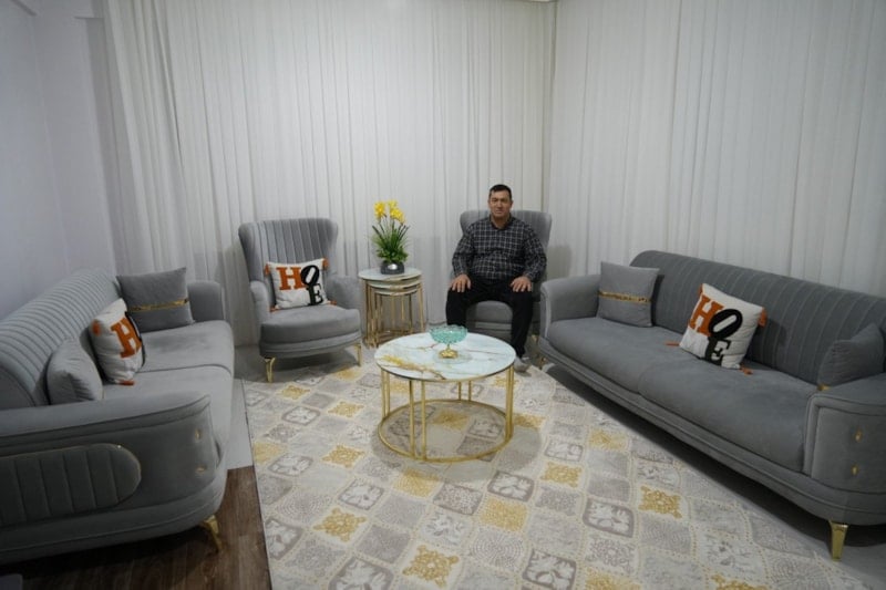 Depremde evimiz yıkıldı, eşim yaralandı. Devletimiz kısa sürede evimizi yaptı ve teslim etti. İçine girdiğimizde çok mutlu olduk. Villa gibi bir ev yapmışlar. Kendi imkânlarımızla böyle bir ev yapmamız mümkün değildi. Allah emeği geçenlerden razı olsun.