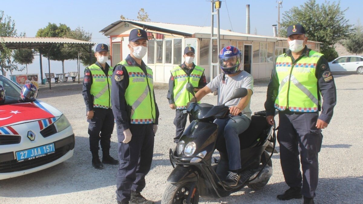 Gaziantep'te Yavuzeli ve Araban İlçe Jandarma Komutanlığı Trafik Timleri, Yavuzeli - Araban karayolu üzerinde denetim yaptı. Kaskı olmayan motosiklet sürücülerini durduran ekipler, ceza yazmayarak uyarılarda bulundu.
