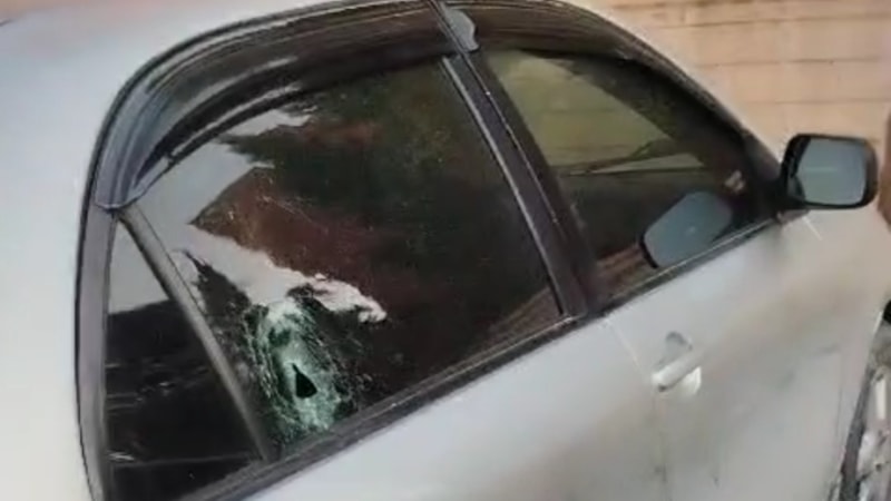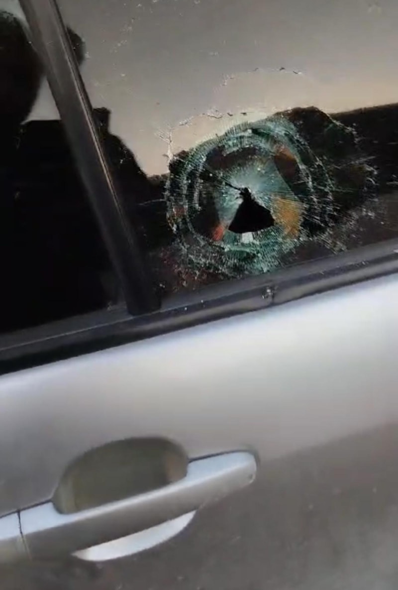 Merminin isabet ettiği kapı camında delik ve kırıklar oluşurken. araçta kimsenin olmaması faciayı önledi.