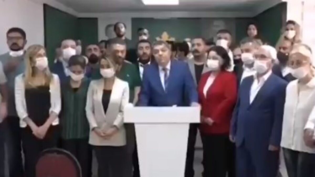 İstifasını verecek olan partililer, genel merkez binasında basın toplantısı düzenledi.
