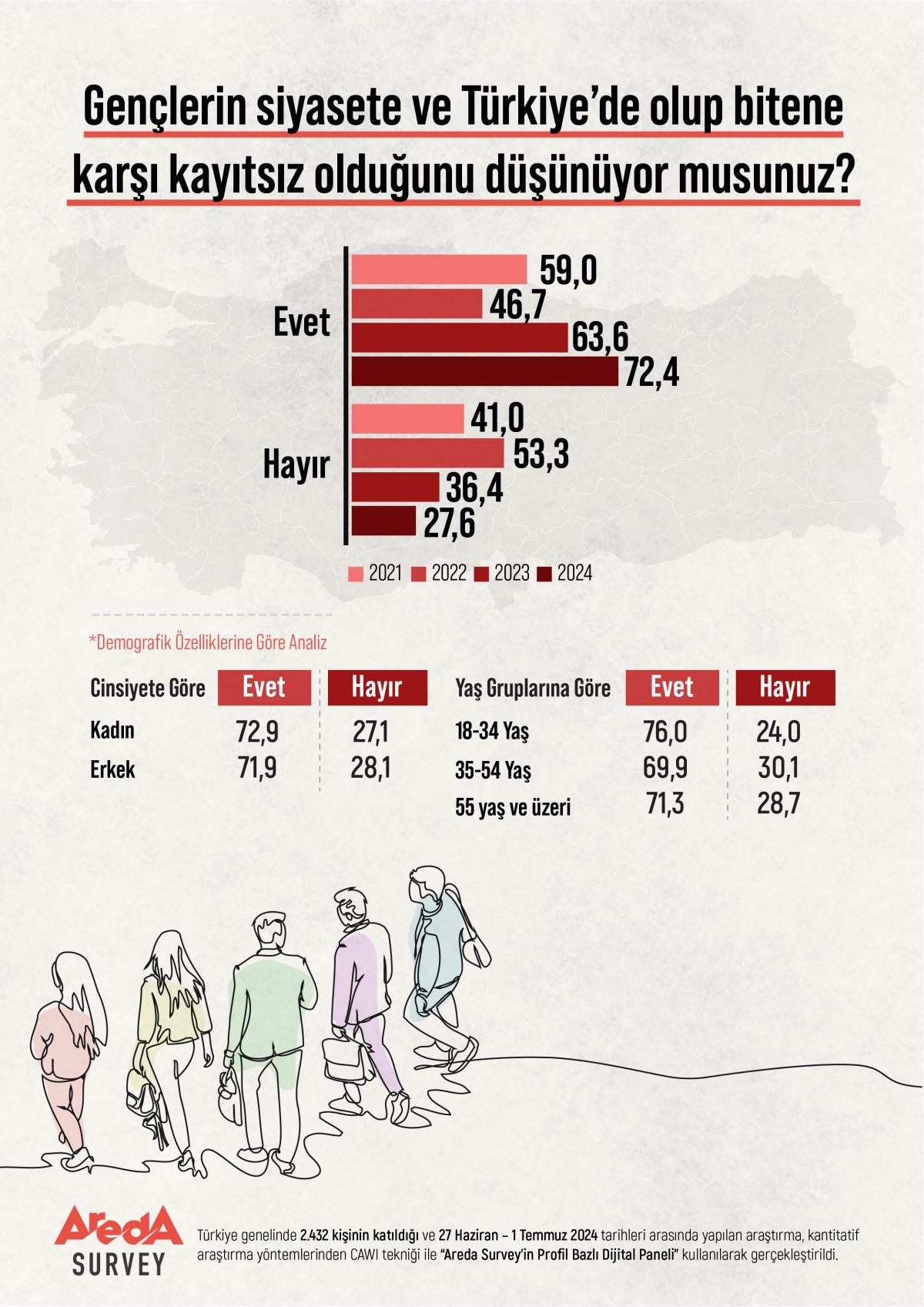 Areda Survey araştırma şirketi, Türkiye genelinde 27 Haziran-1 Temmuz tarihleri arasında 2 bin 432 kişiyle bir anket gerçekleştirdi.