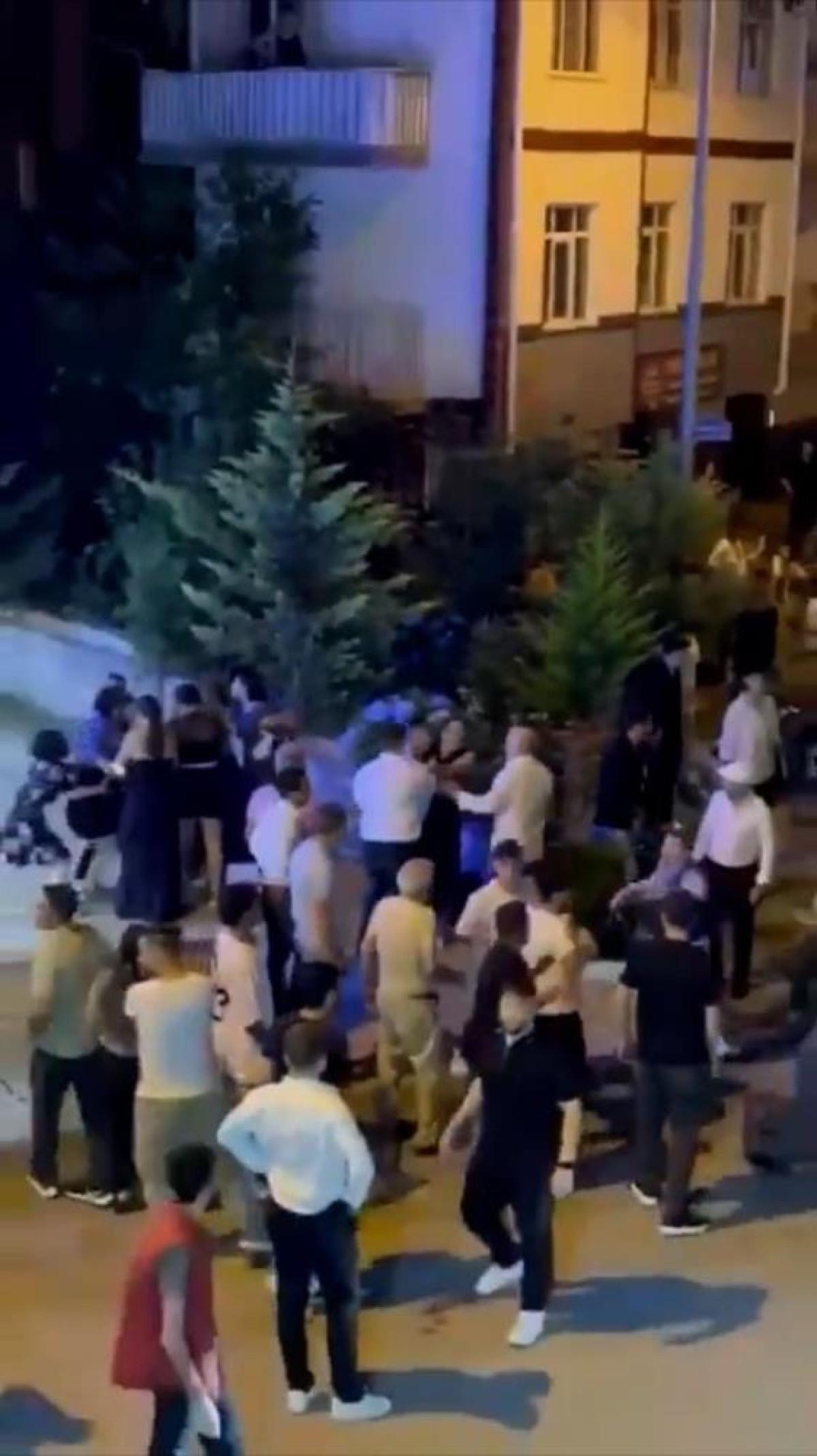 Düğün salonunda iki ailenin bireyleri arasında çıkan kavga, olayın büyümesiyle salonun dışına taştı.