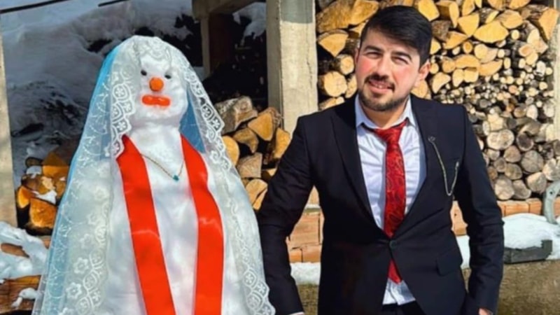 Osman Karadeniz, karla yaptığı kardan gelinine 'Münire' adını verdi ve düğün töreni düzenledi.