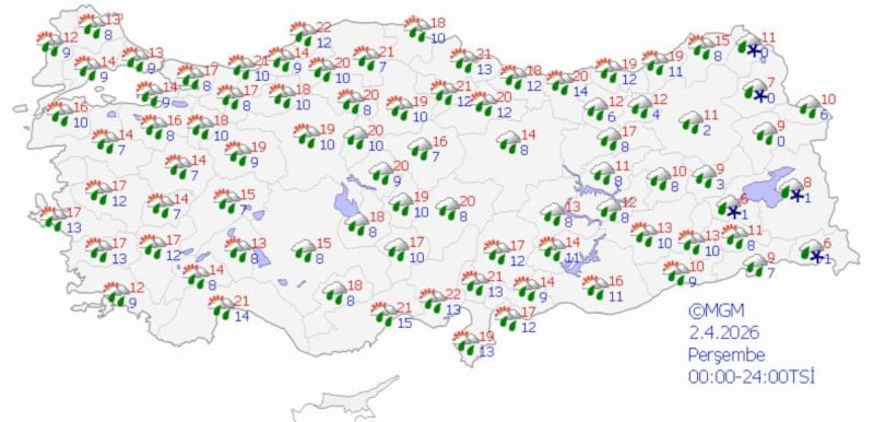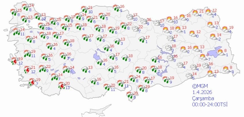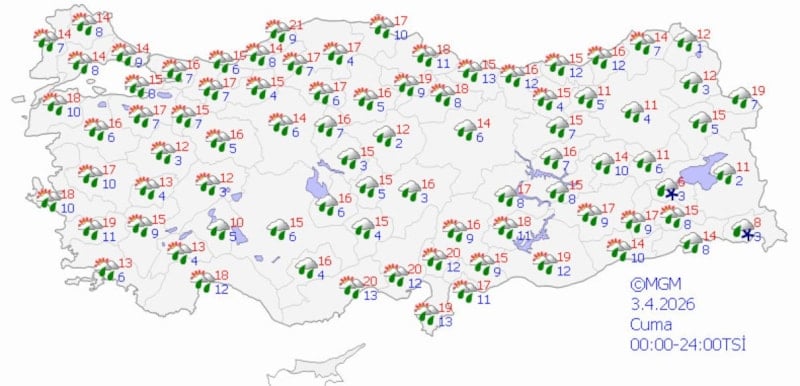 Meteoroloji Genel Müdürlüğü'nün (MGM) son verilerine göre, Türkiye genelinde değişken hava koşulları etkili olacak.