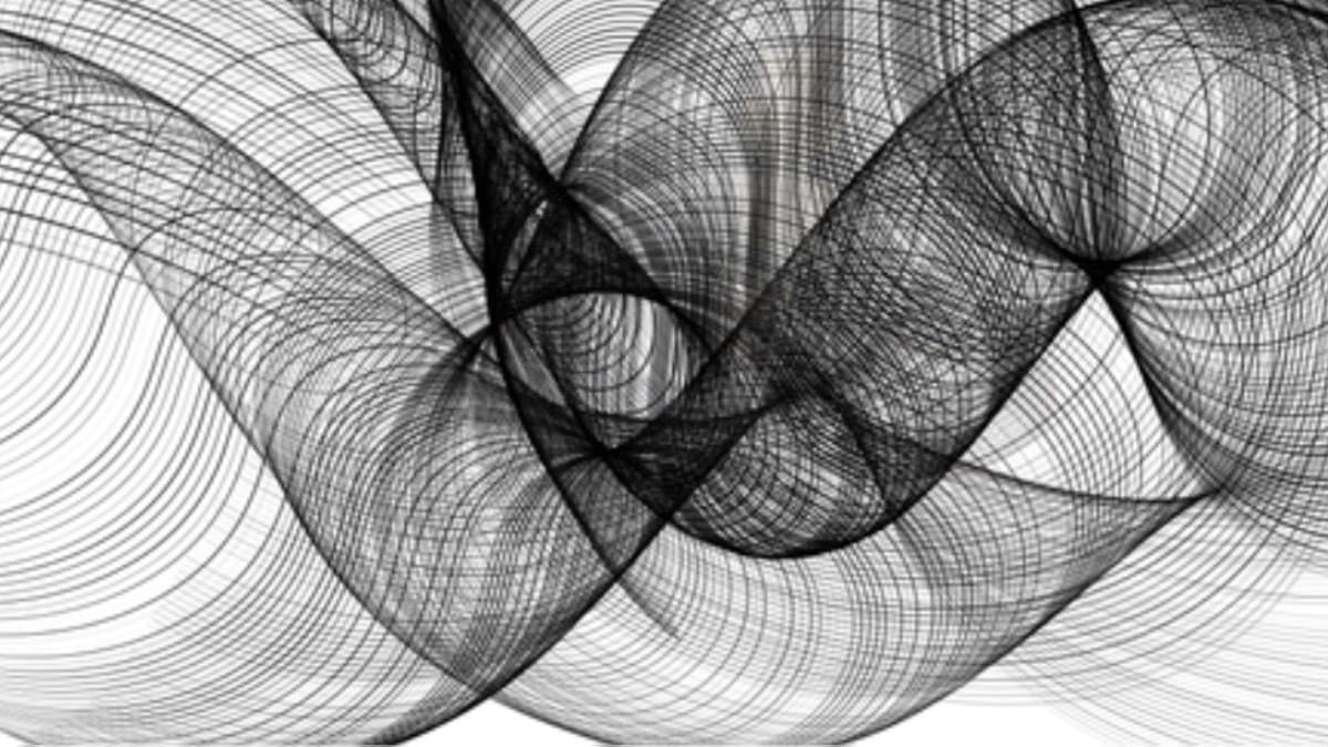 Yukarıdaki resimde beyaz bir arka plan üzerinde kavisli siyah çizgilerin ve eşmerkezli dairelerin örtüşmesi gibi görünüyor.