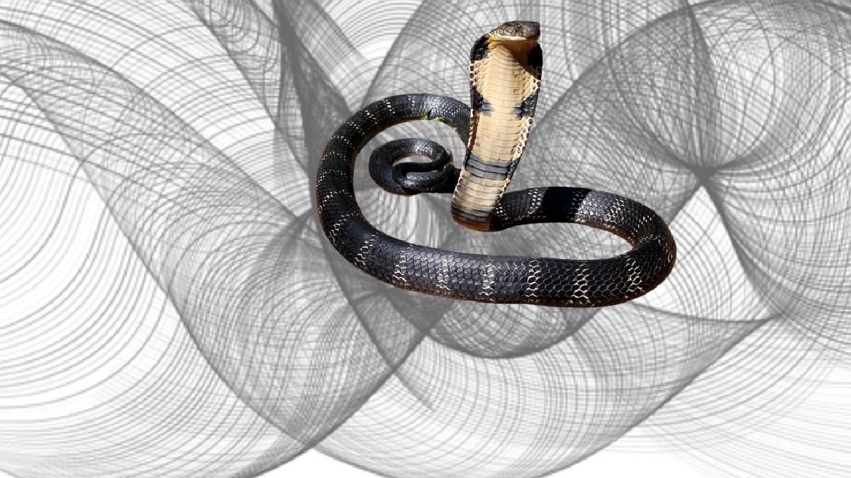 Beyaz bir arka plan üzerinde üst üste binen kavisli siyah çizgiler ve eşmerkezli dairelerden oluşan görselin içinde, ilk bakışta fark edilmeyen bir hayvan ustaca gizlenmiş durumda.