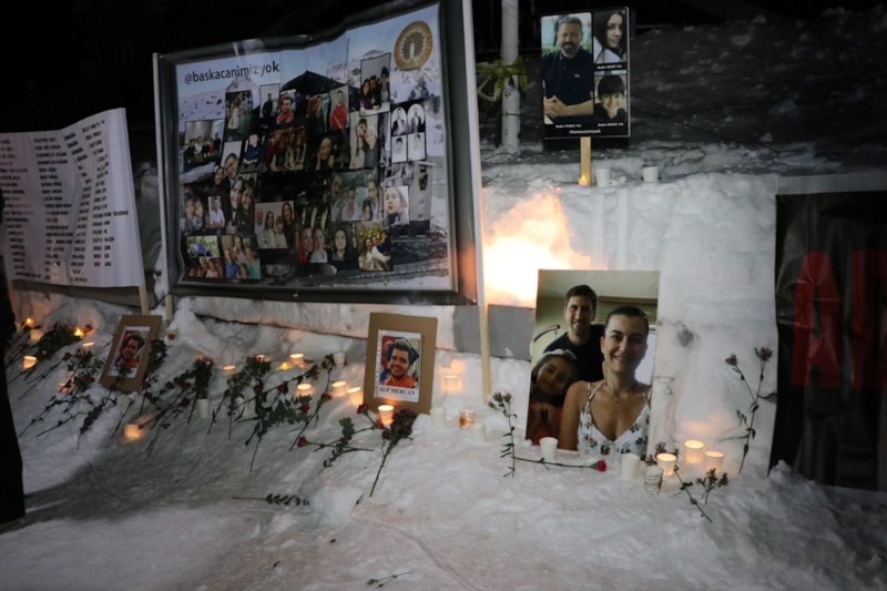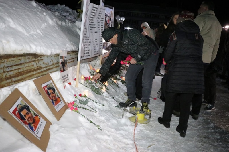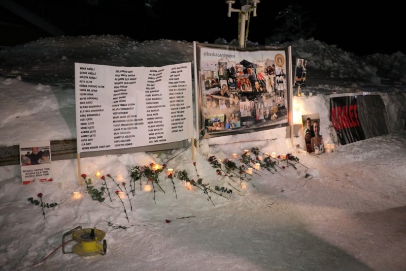 Kartalkaya Kayak Merkezi’nde bulunan Grand Kartal Otel’de çıkan ve 78 kişinin yaşamını yitirdiği yangının 1. yılında aileler ve vatandaşlar, facianın yaşandığı otelin önünde bir araya gelerek hayatını kaybedenleri andı.