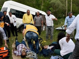 Gümüşhane-Kelkit karayolu Pirahmet köyü çıkışında, Murat Avcil'in (35) kullandığı 21 VF 168 plakalı minibüs, sürücünün direksiyon hakimiyetini kaybetmesi sonucu önce karşı şeride geçti, ardından da şarampole devrildi.