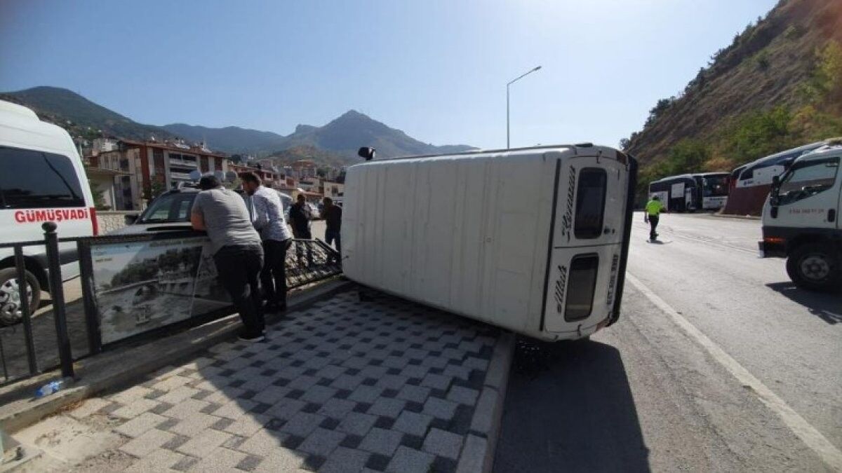 Saat 09.00’da Gümüşhane-Trabzon transit karayolu eski otogar mevkiinde meydana gelen kazada, karayolu üzerinde seyir halindeki 61 ADS 898 plakalı minibüsün sürücüsü Taner Soydan, bir anda yola çıkan yayaya çarpmamak için manevra yapınca minibüsün kontrolünü kaybetti.
