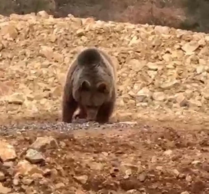 Pekin ve Taştan, ayıyı korkutmamaya özen göstererek araçlarını yavaşlattı. Yanlarındaki hamsileri ayıya veren ikili, hayvanın sakin bir şekilde hamsiyi yiyerek yavaşça bölgeden uzaklaşmasını sağladı.