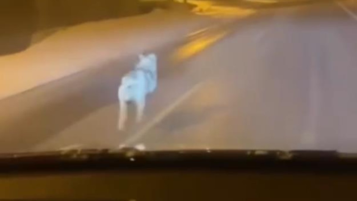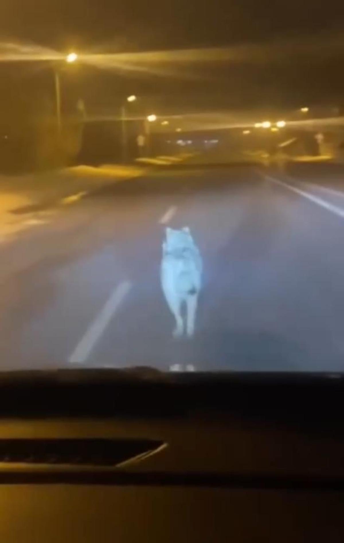 Görüntülerde kurdun hızla aracın önünde koştuğu ve uzun süre yoldan ayrılmadığı görülürken o anlar saniye saniye kayıt altına alındı.