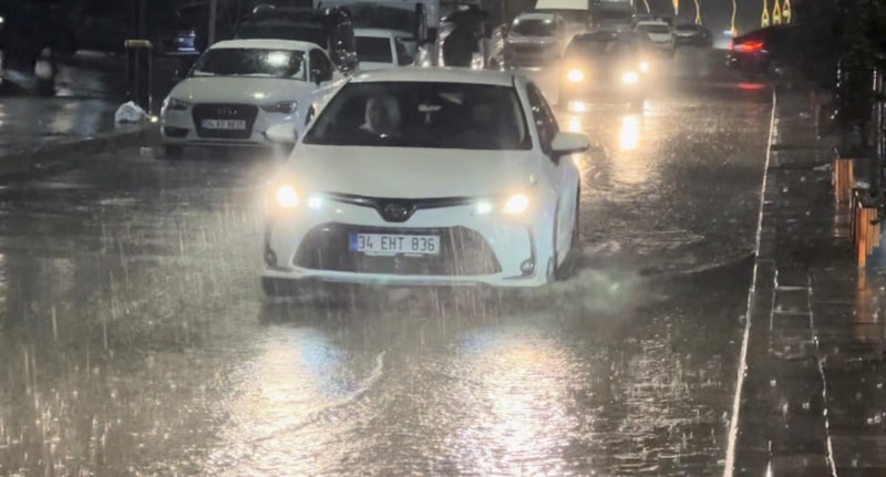 Özellikle Cengiz Topel Caddesi üzerinde seyir halinde olan araçların yoğun yağışlar nedeniyle iletmekte zorlandığı görüldü.